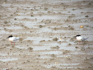 MARSH SANDPIPER. It was incredibly distant, and it wasn't until it re-emerged that I could really get to grips with it, it was much smaller, paler and more elegant than the surrounding Redshanks, and had pretty long legs (just about visible in the first shot below). When it stretched it's neck, it had a very stilt-like appearance. Also present were the 2 families of